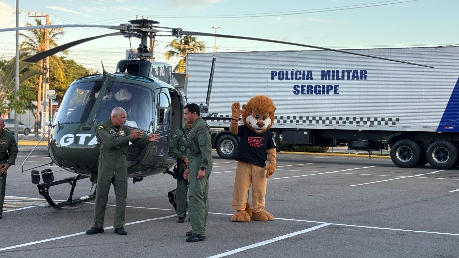 Chegada do helicóptero da GTA e da mascote do Proerd: 17h30 às 18h